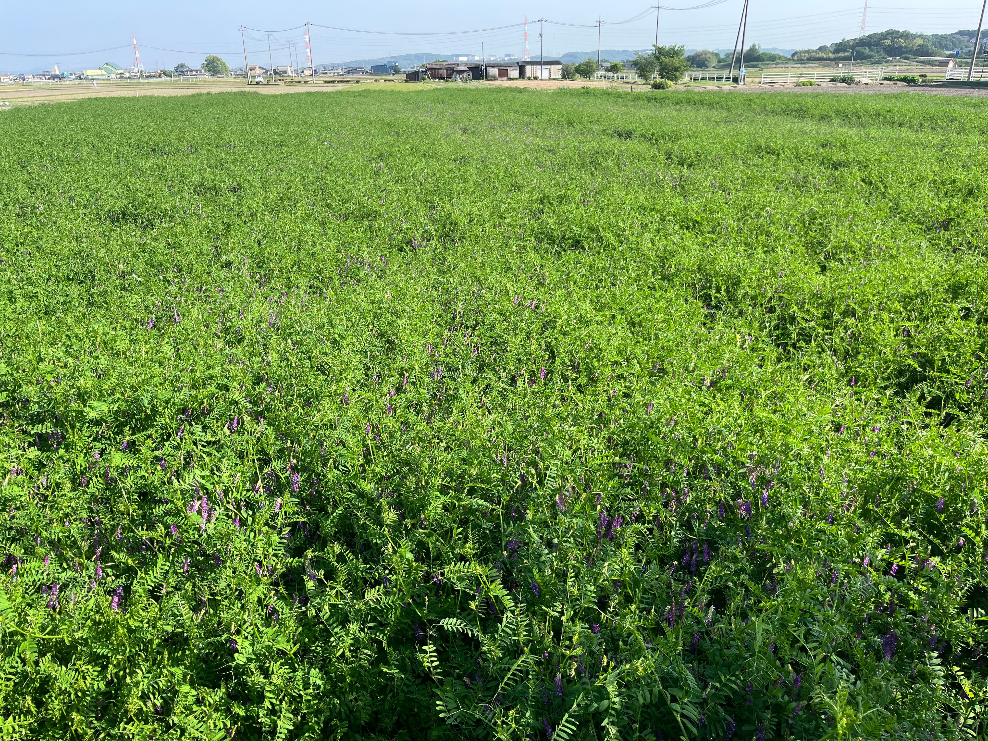 524ファームの土づくりの準備は、稲刈り後からはじまります。稲刈りで出た藁を田んぼにまんべんなくまき散らし、風化による分解を促進します。そしてヘアリーベッチの種子を2月の寒い日に田起こしをしてまきます。4月下旬ごろから花が咲きはじめ、田んぼには蝶やミツバチなどたくさんの生き物が集まってきます。そして花の見頃が過ぎる5月下旬ごろにトラクターで耕して土にすき込みます。